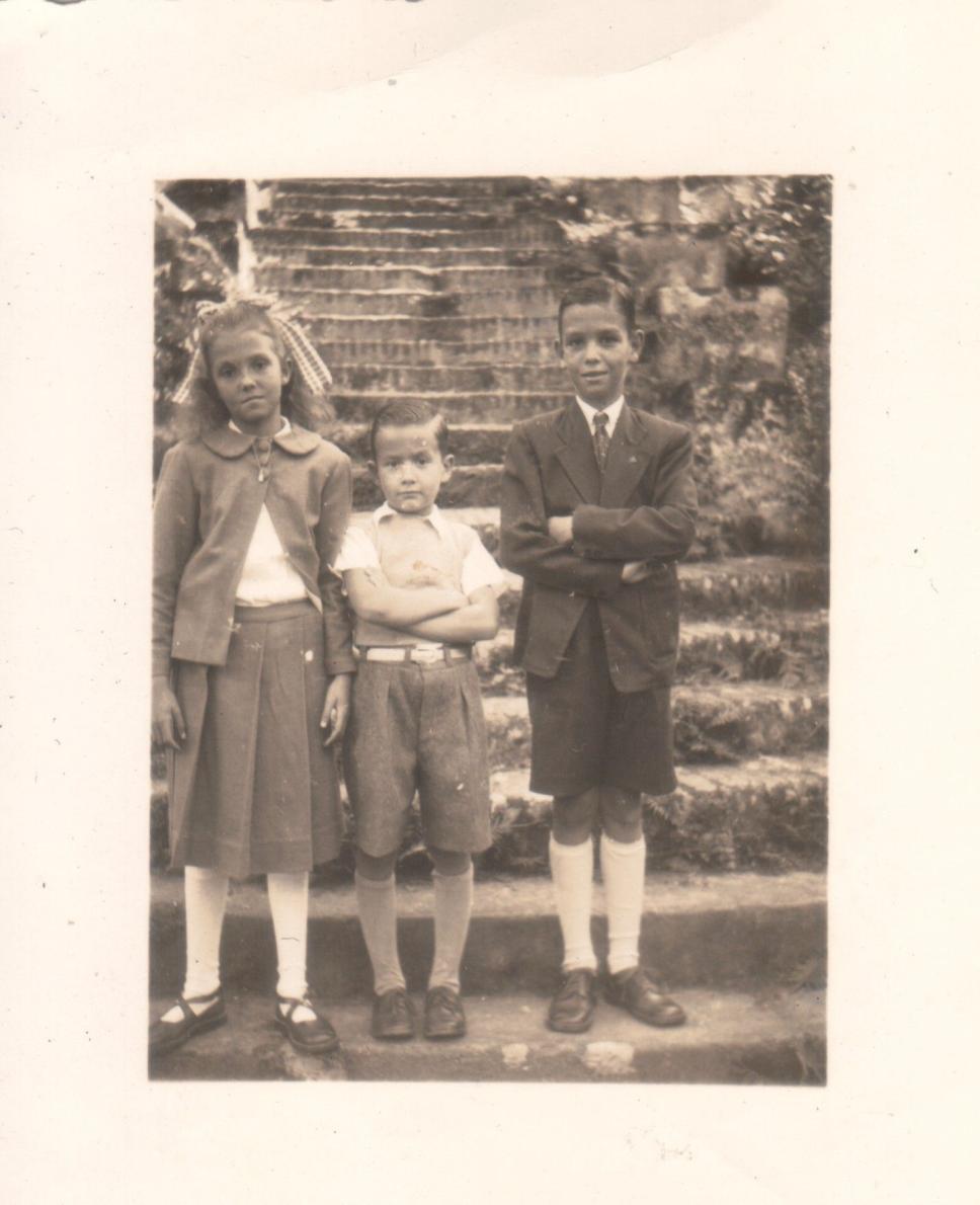 Beatriz, Luiz Paulo e João na escadaria do Solar.