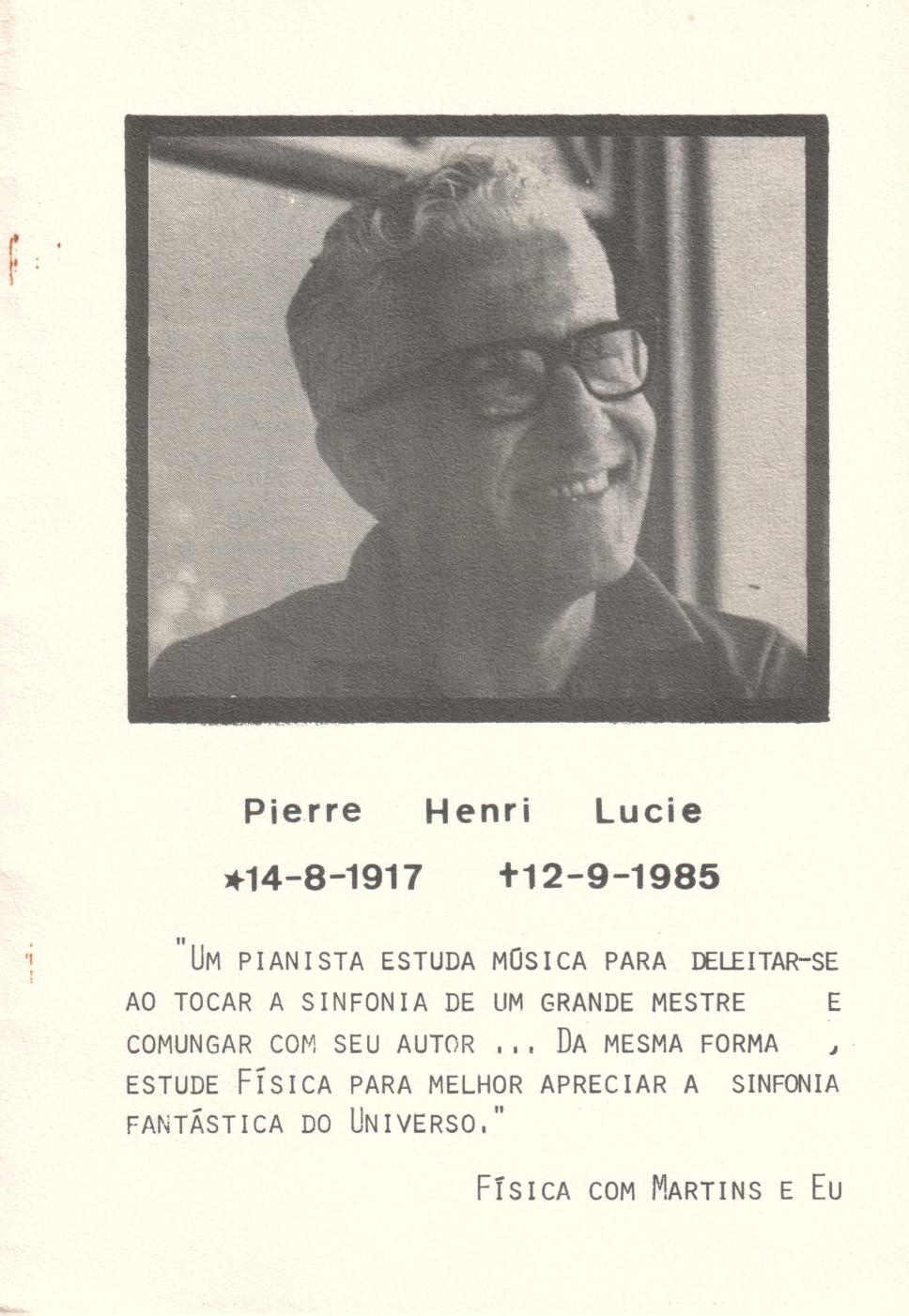 Publicação com homenagem pós mortem ao Padre Pierre Henri Lucie - 14/08/1917 - 12/09/1985