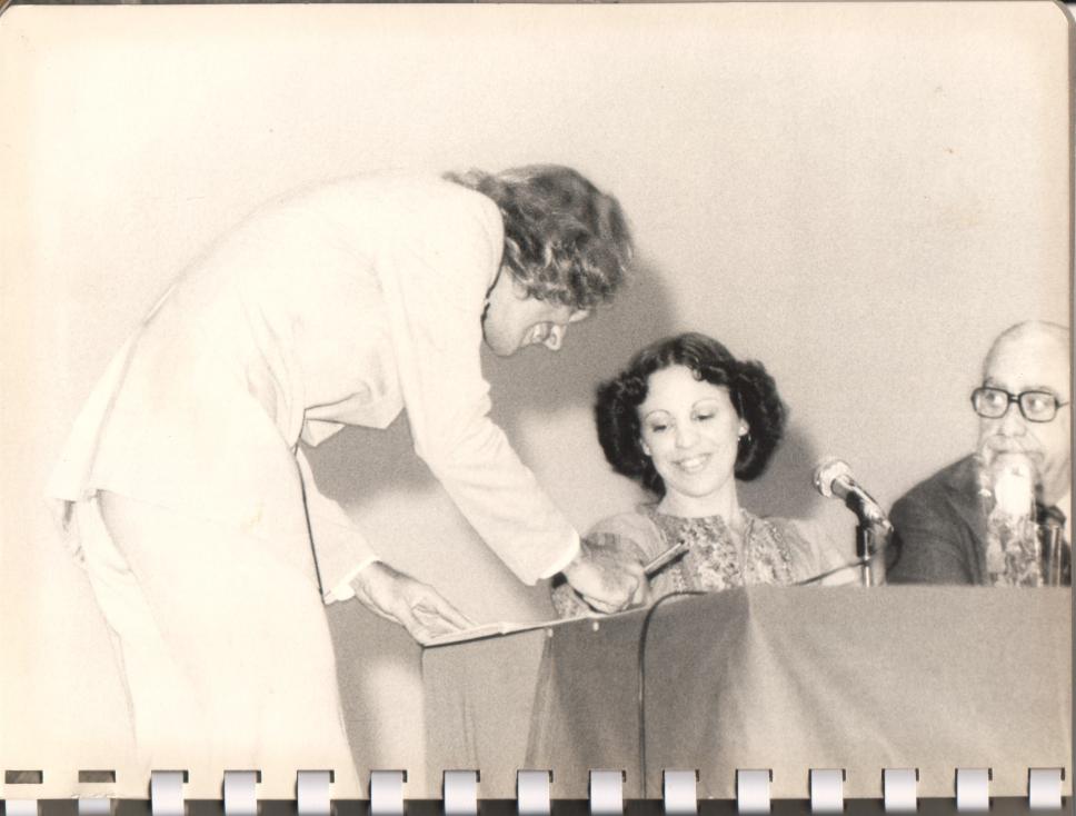 Formando assina o livro de formatura. Colação de grau do curso de Engenharia Eletrônica.