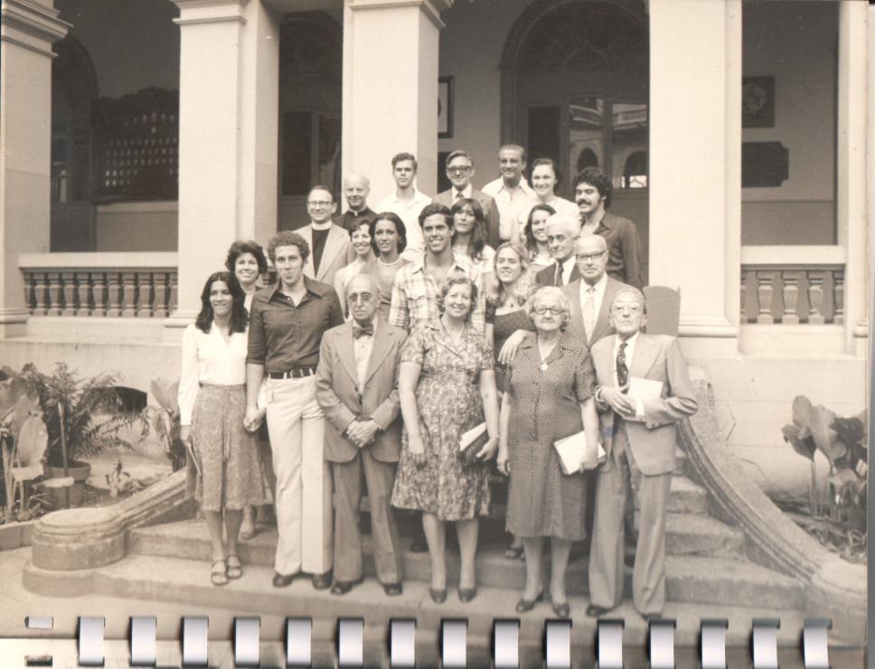 Alunos e professores presentes à Missa de Formatura, em escadaria no Colégio Santo Inácio.