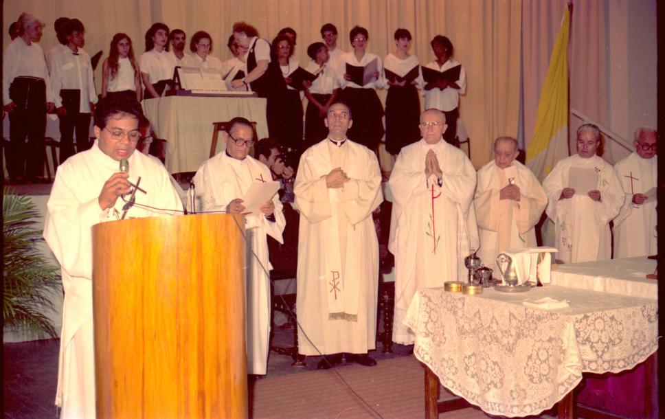 Missa de Ação de Graças em homenagem aos 50 anos da PUC-Rio. Ao fundo, o Coral da PUC-Rio.