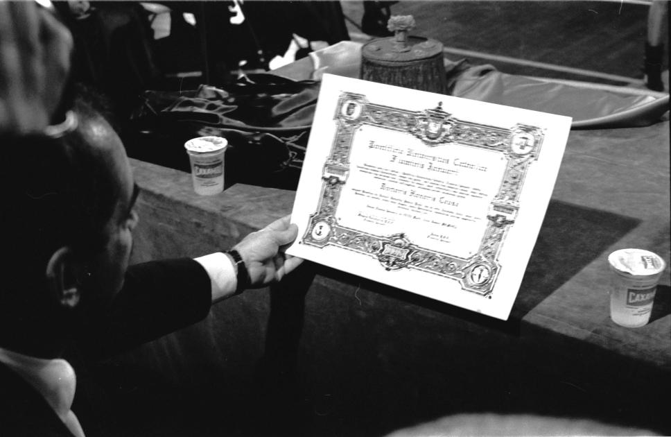 Coleção Série de fotografias da cerimônia de Doutor Honoris Causa de Dom Helder Camara e Sobral Pinto Código exclusivo eg0093_033 Data da criação Ano 1991 Data de criação Ter, 01/01/1991 - 12:00 Referente a Departamento de Educação (EDU) Identificação Original Doutor Honoris Causa Descrição diploma