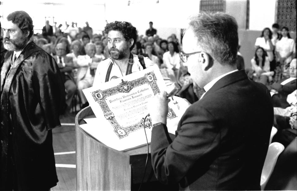 O prof. pe. Pedro faz a leitura da concessão do título de Doutor Honoris Causa a dom Helder Camara.
