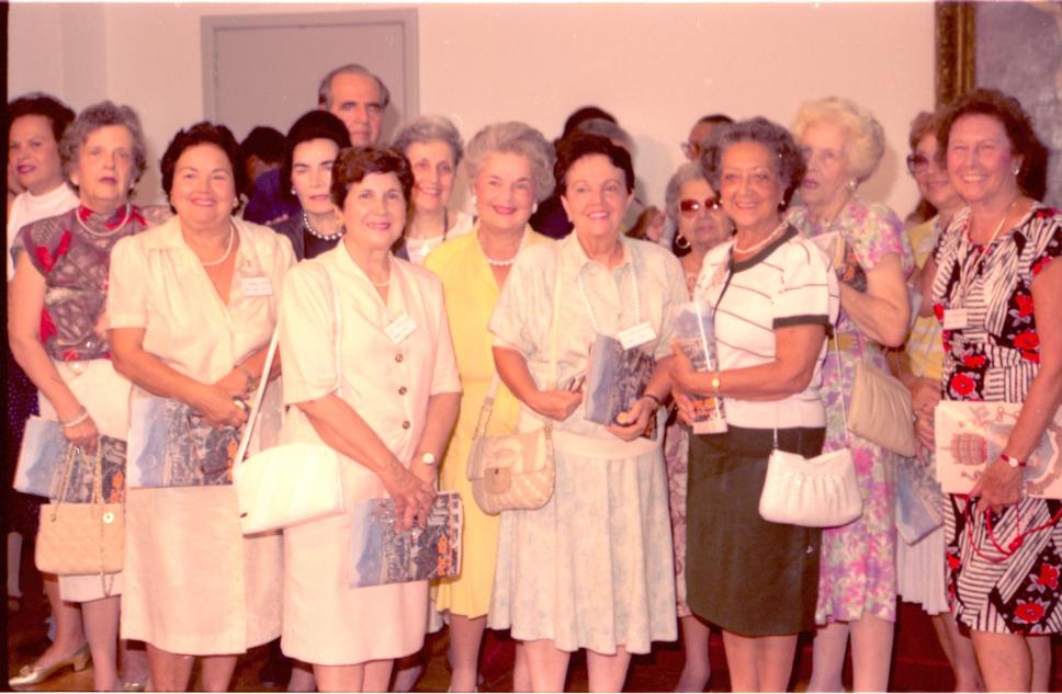 Grupo de senhoras na homenagem aos professores fundadores da Universidade e confraternização dos alunos das turmas de 1941 e 1942.