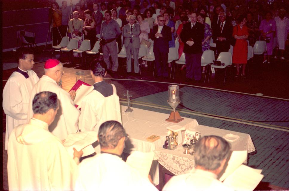 Missa com Dom Eugênio Sales na homenagem aos professores fundadores da Universidade e confraternização dos alunos das turmas de 1941 e 1942.