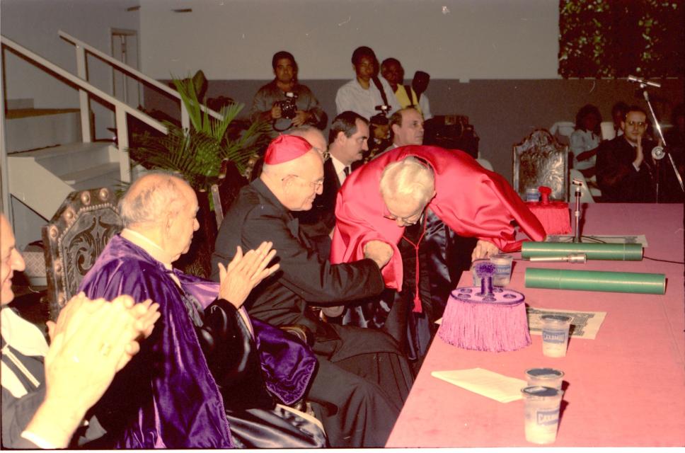 Cerimônia nas comemorações dos 50 anos da PUC-Rio, na qual foi concedido o título de Doutor Honoris Causa a Sobral Pinto e a Dom Helder Camara.