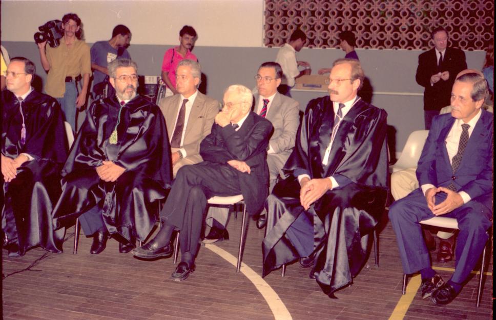 Cerimônia nas comemorações dos 50 anos da PUC-Rio, na qual foi concedido o título de Doutor Honoris Causa a Sobral Pinto e a Dom Helder Camara.
