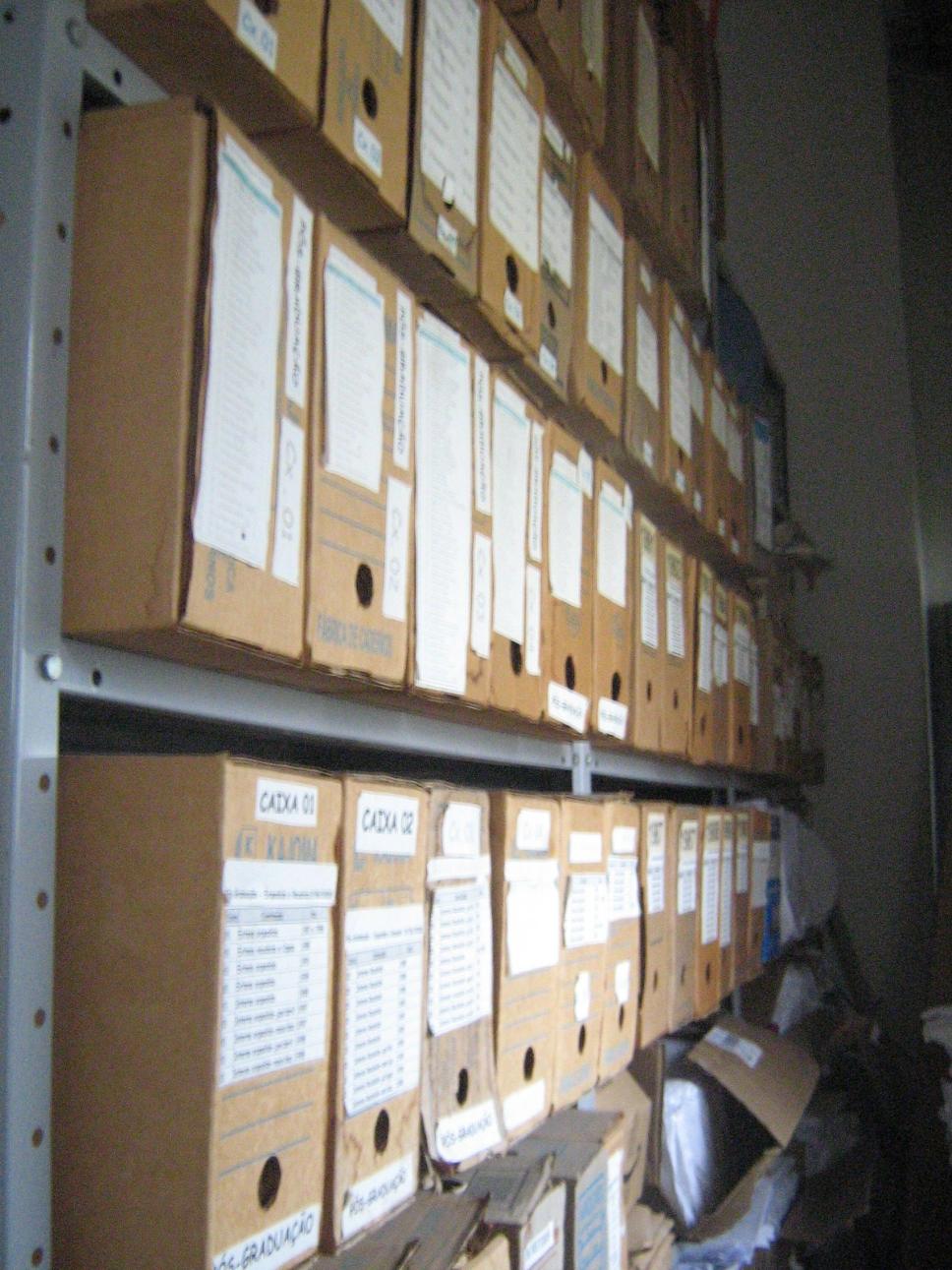 Arquivo com caixas de documentos.