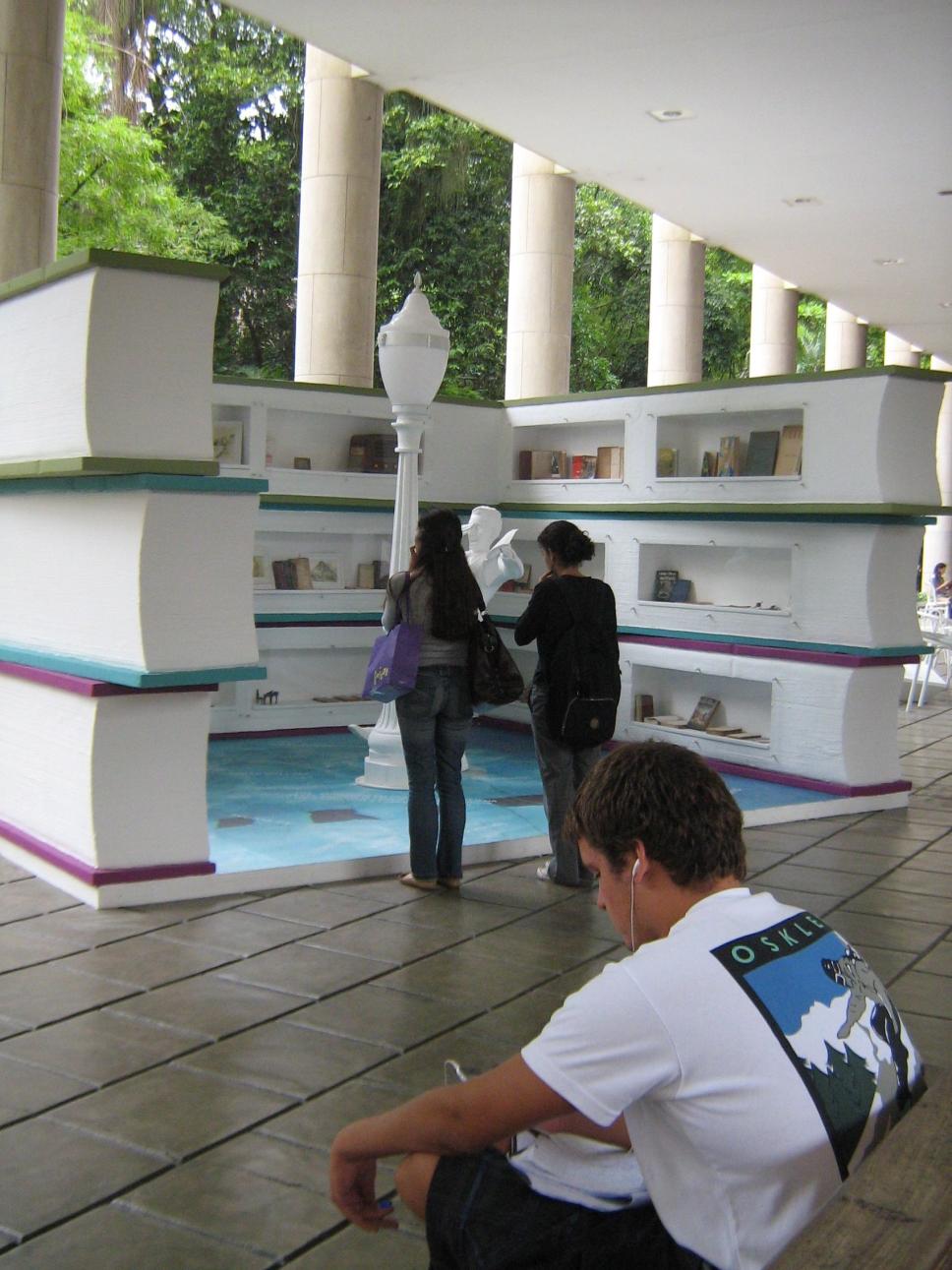 Coleção Série de fotos da Exposição Encontro Marcado com Sabino Código exclusivo eg0101_044 Data da criação Ano 2008 Data de criação Ter, 01/01/2008 - 12:00 Identificação Original Exposição Encontro Marcado com Fernando Sabino Descrição Exposição, Ala Frings, escultura, livro, banco, alunos, pilotis, mata.