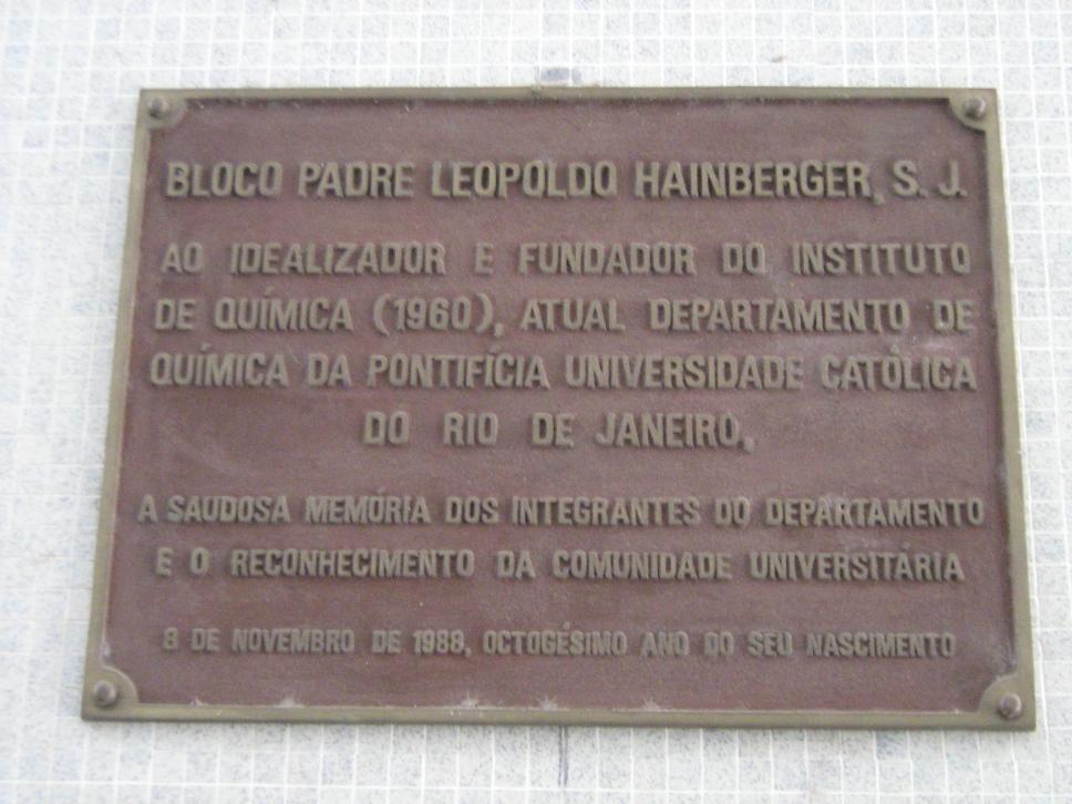 Placa em homenagem ao Padre Leopoldo Hainberger, idealizador e fundador do Instituto de Química