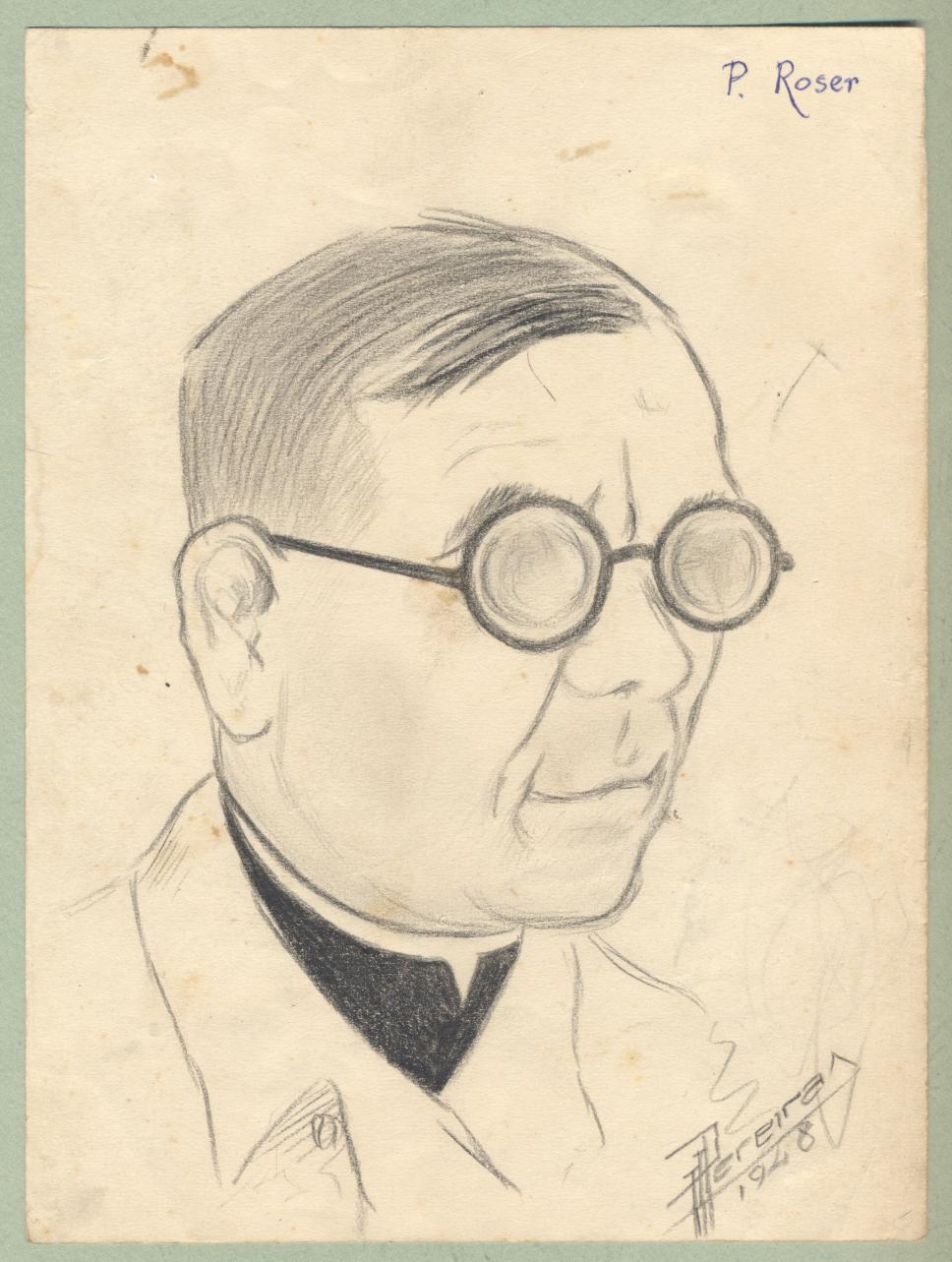 Caricatura do pe. Francisco Xavier Röser, S.J., feita em 1948 por Pereira.