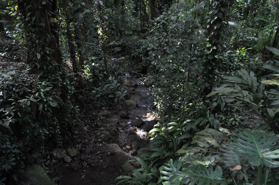 Nascente do Rio Rainha que atravessa a sede do curso de Ciências Biológicas da PUC-Rio.