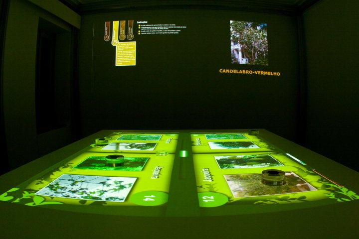 Mesa interativa da sala Jogos de Memória da exposição PUC-Rio 70 Anos, Rumo aos 80.