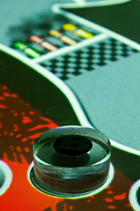 Jogo circuito da Gávea da mesa interativa da sala Jogos de Memória da exposição PUC-Rio 70 Anos, Rumo aos 80.