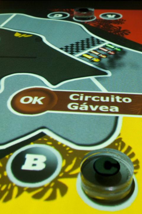 Jogo circuito da Gávea da mesa interativa da sala Jogos de Memória da exposição PUC-Rio 70 Anos, Rumo aos 80.