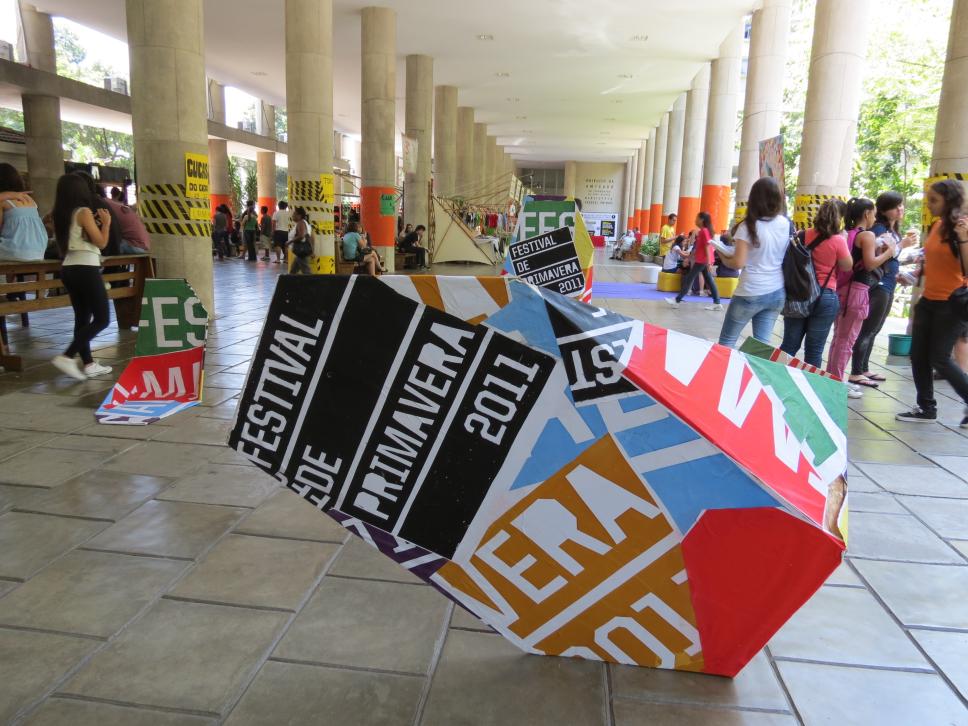 Decoração nos pilotis da ala Kennedy para divulgação do Festival de Primavera 2011.