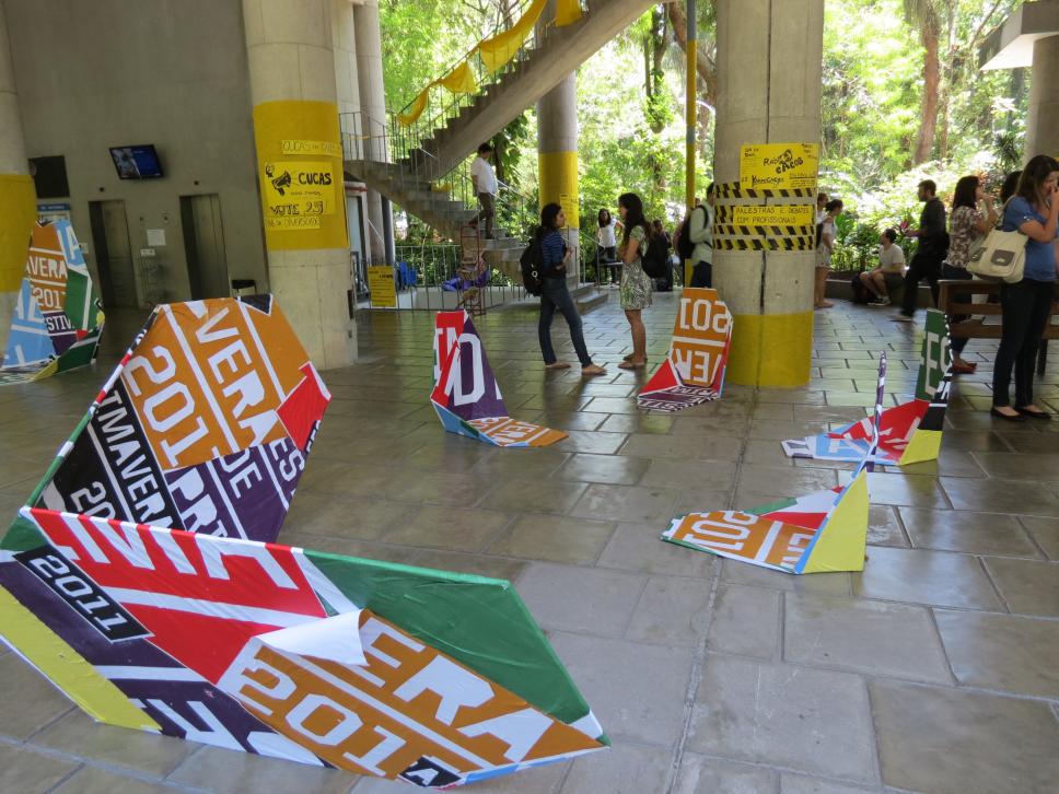Decoração nos pilotis da ala Kennedy para divulgação do Festival de Primavera 2011. Faixas e cartazes de divulgação das chapas para os centros acadêmicos e o DCE.