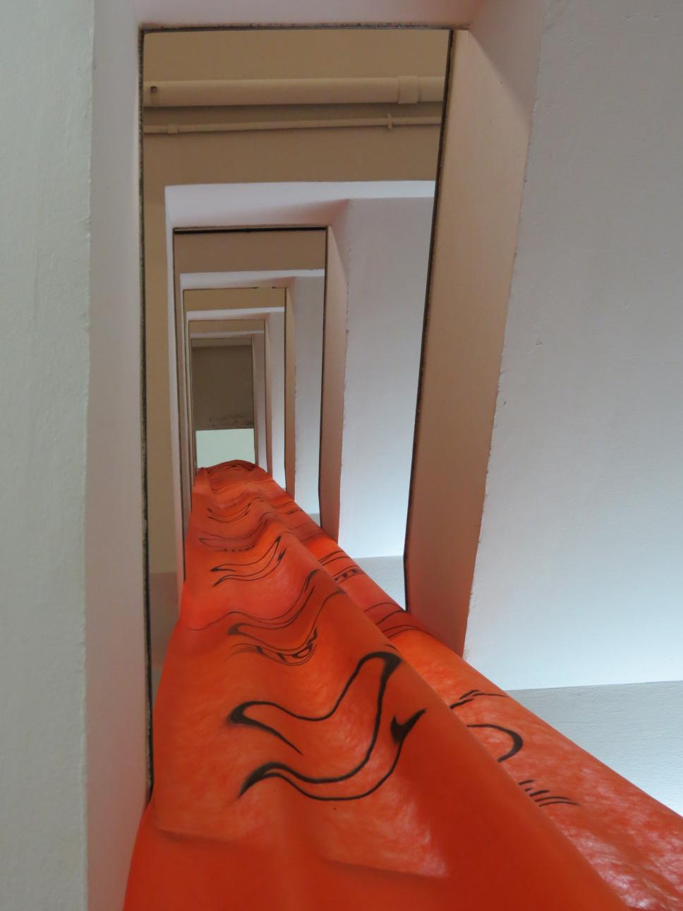 Intervenção com faixa laranja no vão das escadas do edifício da Amizade com propaganda de uma das chapas que disputou as eleições de 2011 para o Diretório Central dos Estudantes da PUC-Rio (DCE).