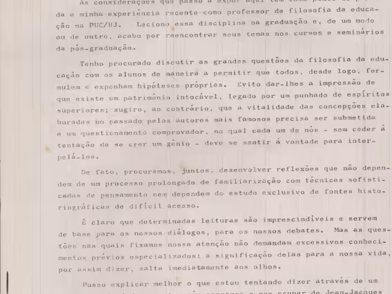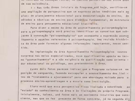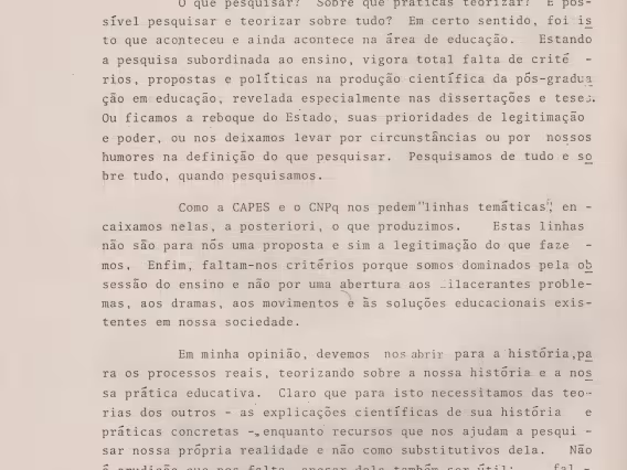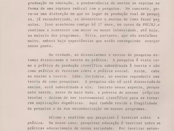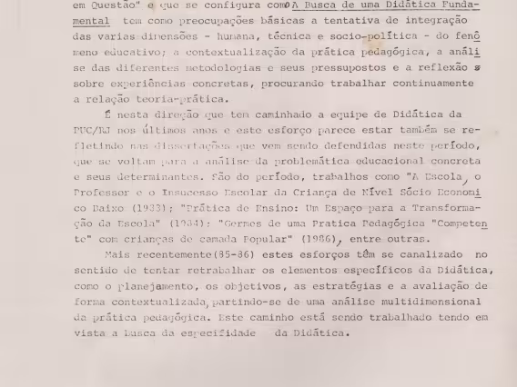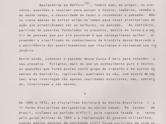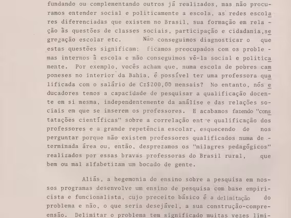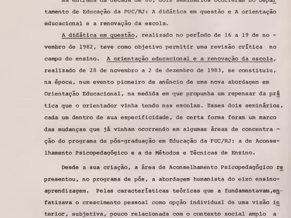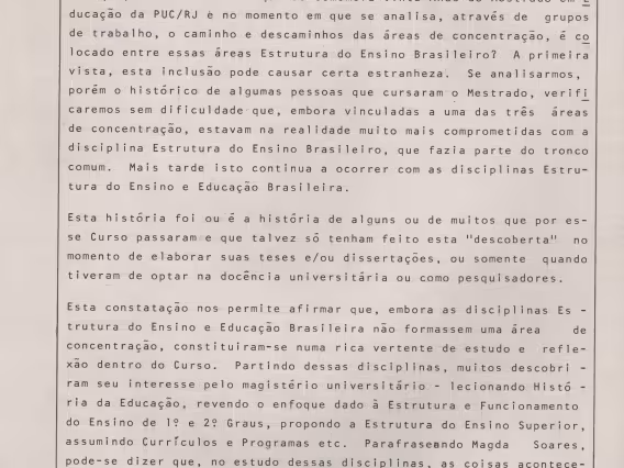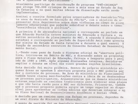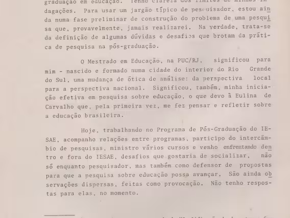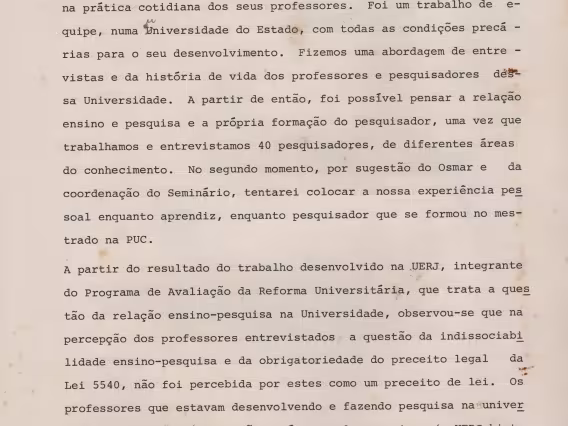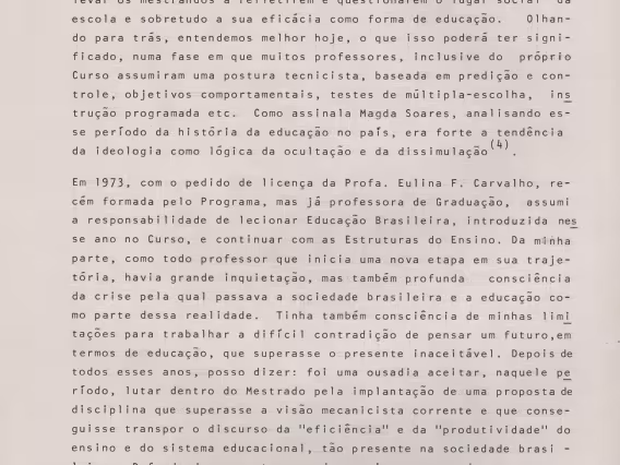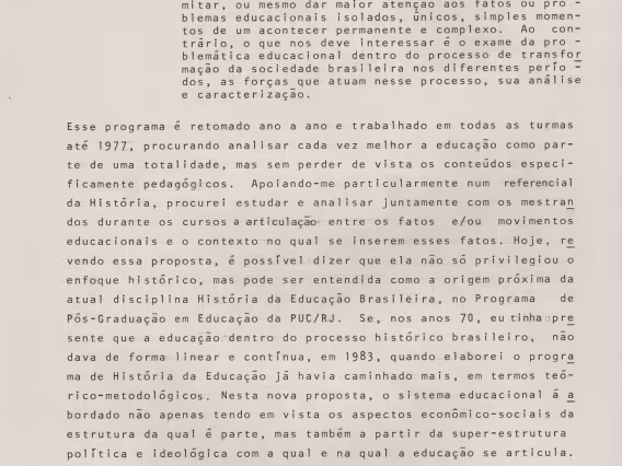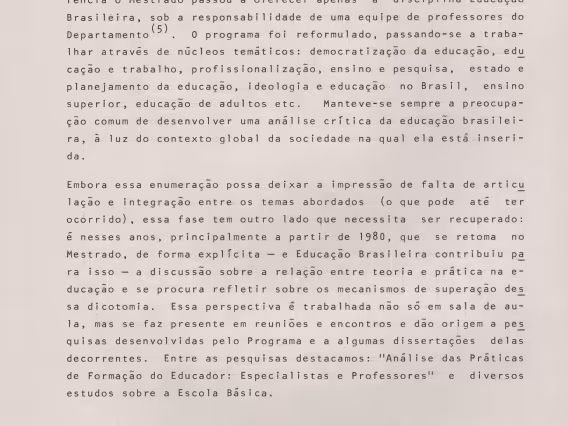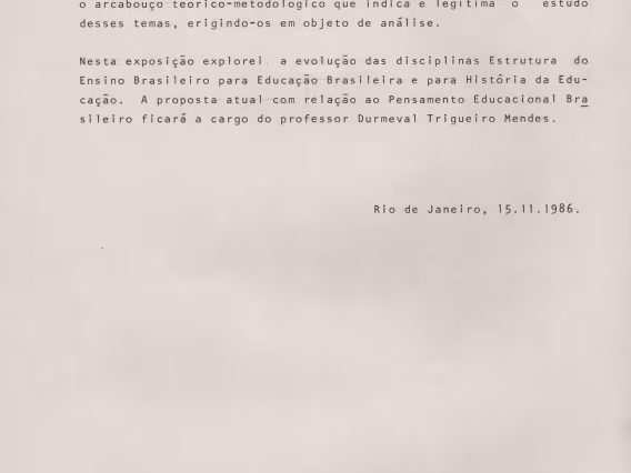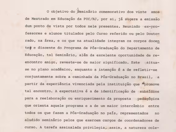 Textos dos professores participantes das mesas do seminário comemorativo dos 20 anos do mestrado do Departamento de Educação da PUC-Rio, realizado entre os dias 19 e 21 de novembro de 1986.
