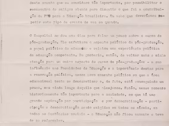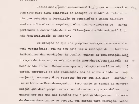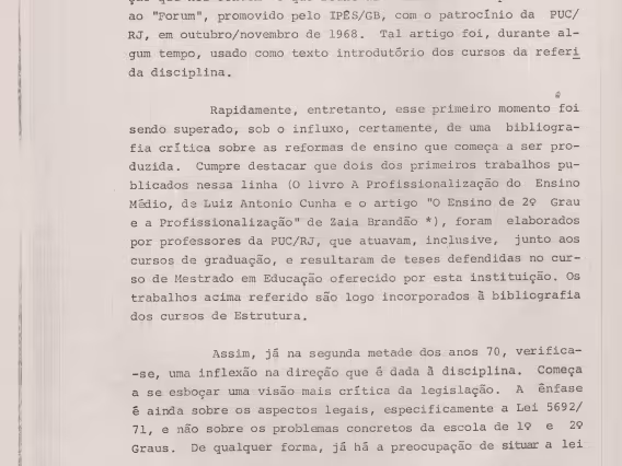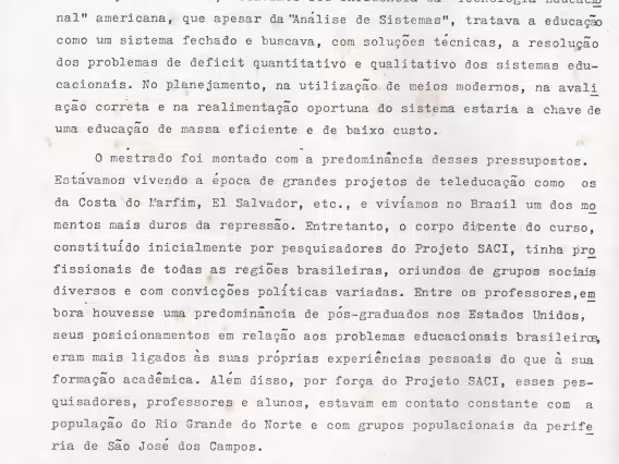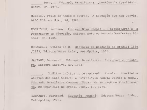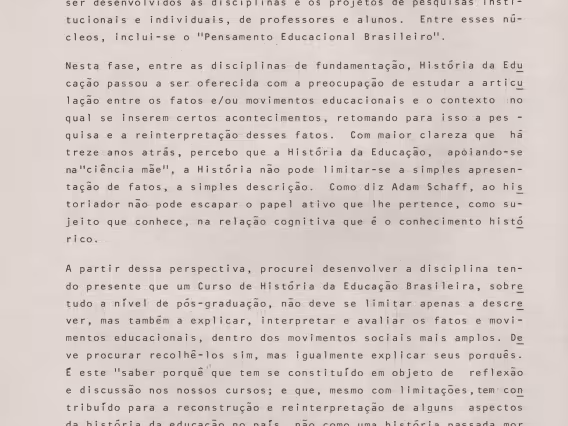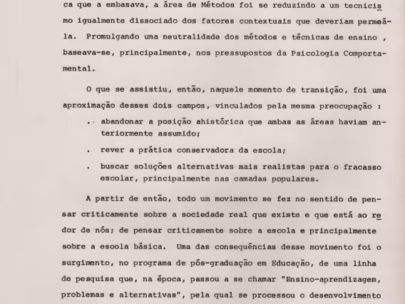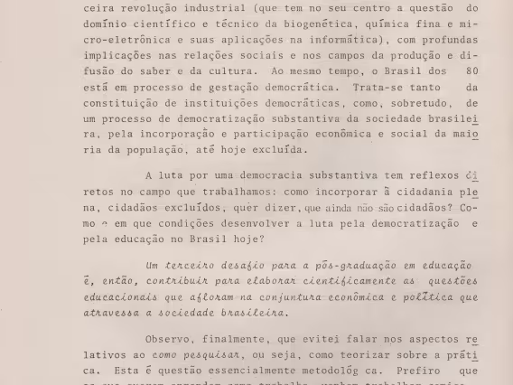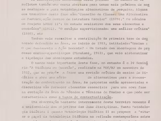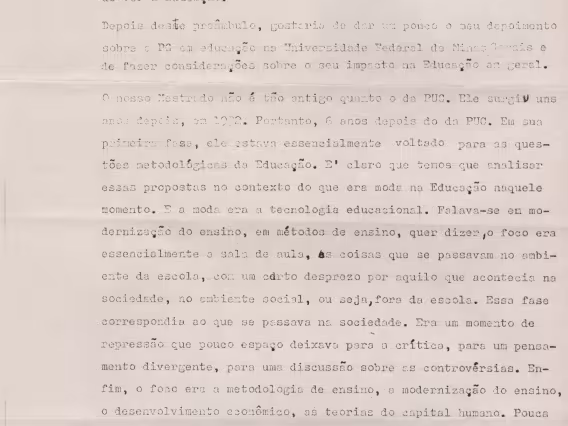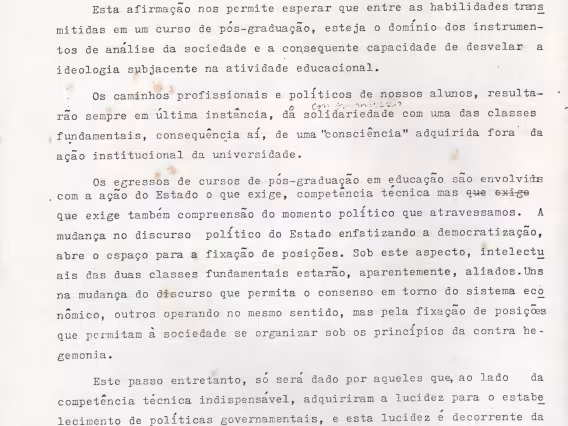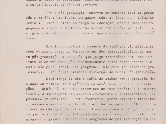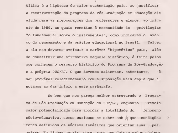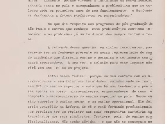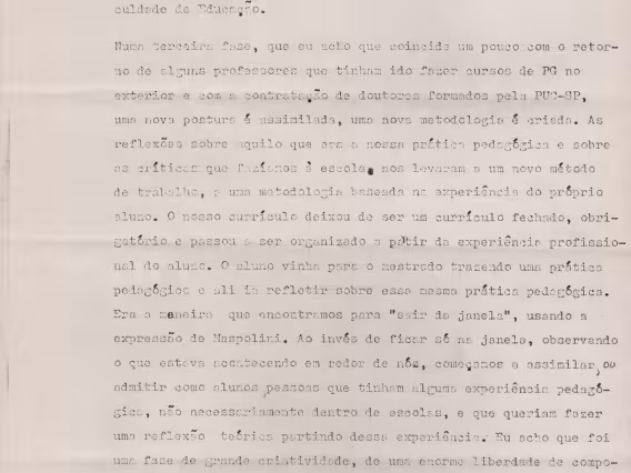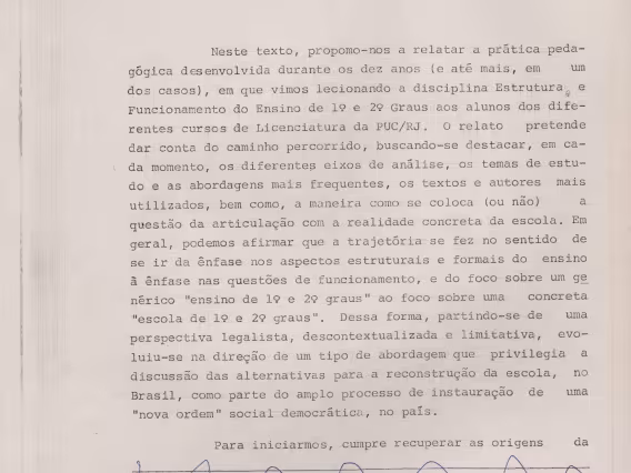 Textos dos professores participantes das mesas do seminário comemorativo dos 20 anos do mestrado do Departamento de Educação da PUC-Rio, realizado entre os dias 19 e 21 de novembro de 1986.
