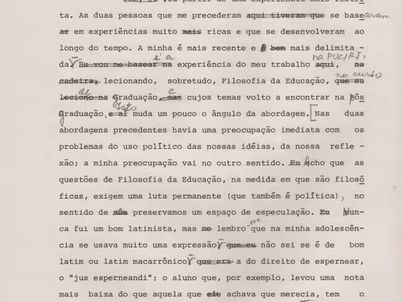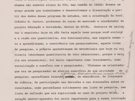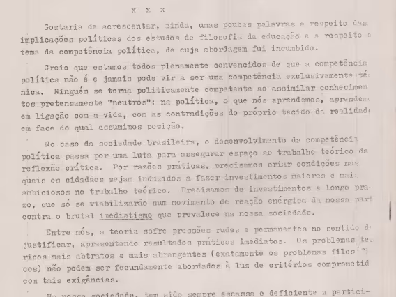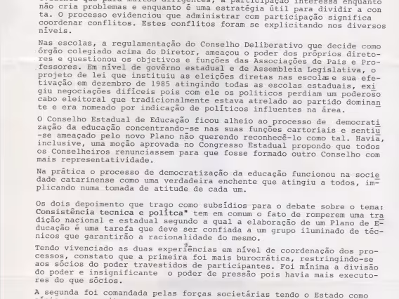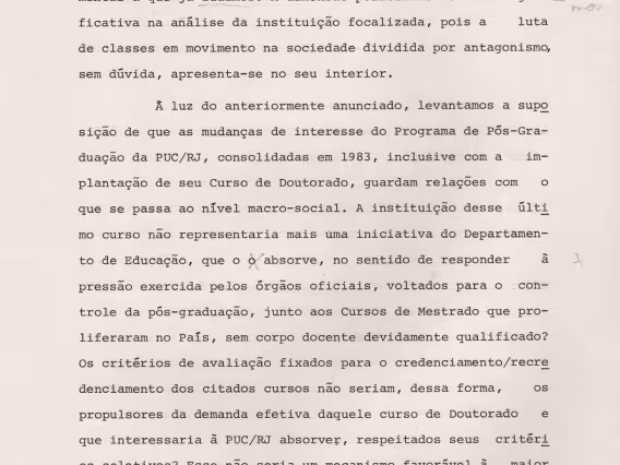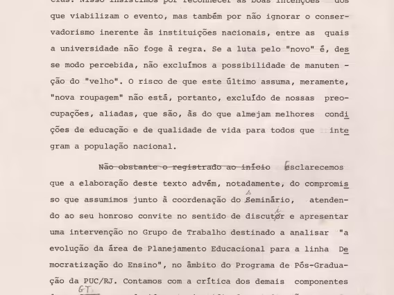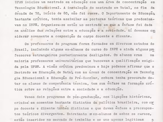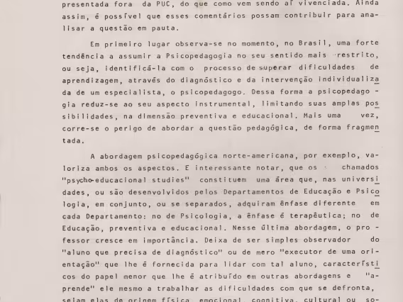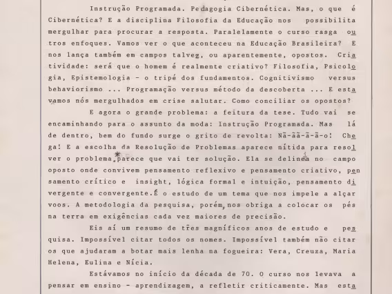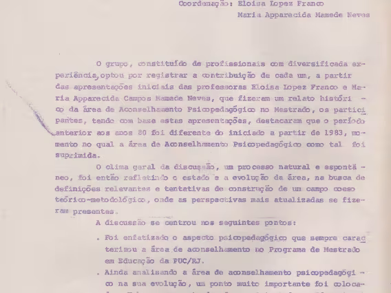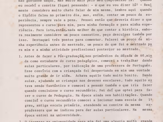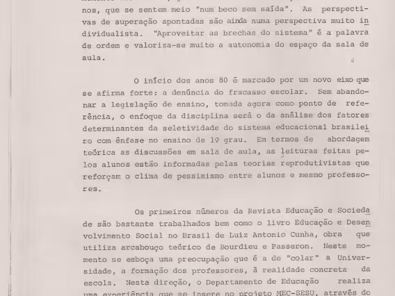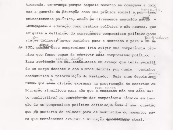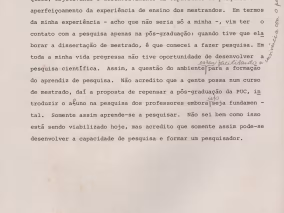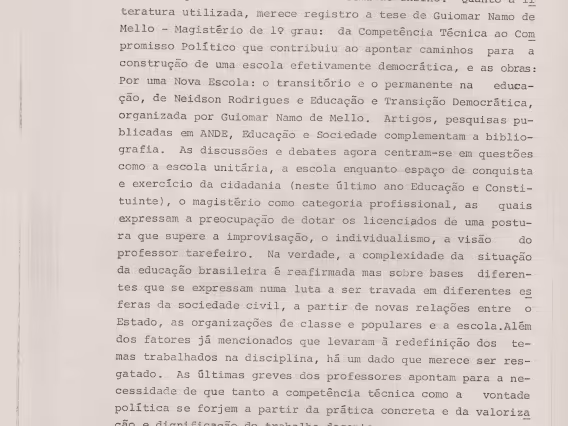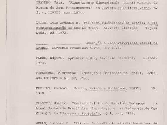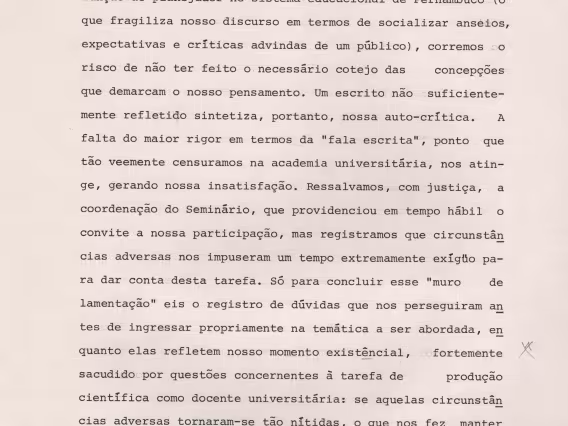 Textos dos professores participantes das mesas do seminário comemorativo dos 20 anos do mestrado do Departamento de Educação da PUC-Rio, realizado entre os dias 19 e 21 de novembro de 1986.