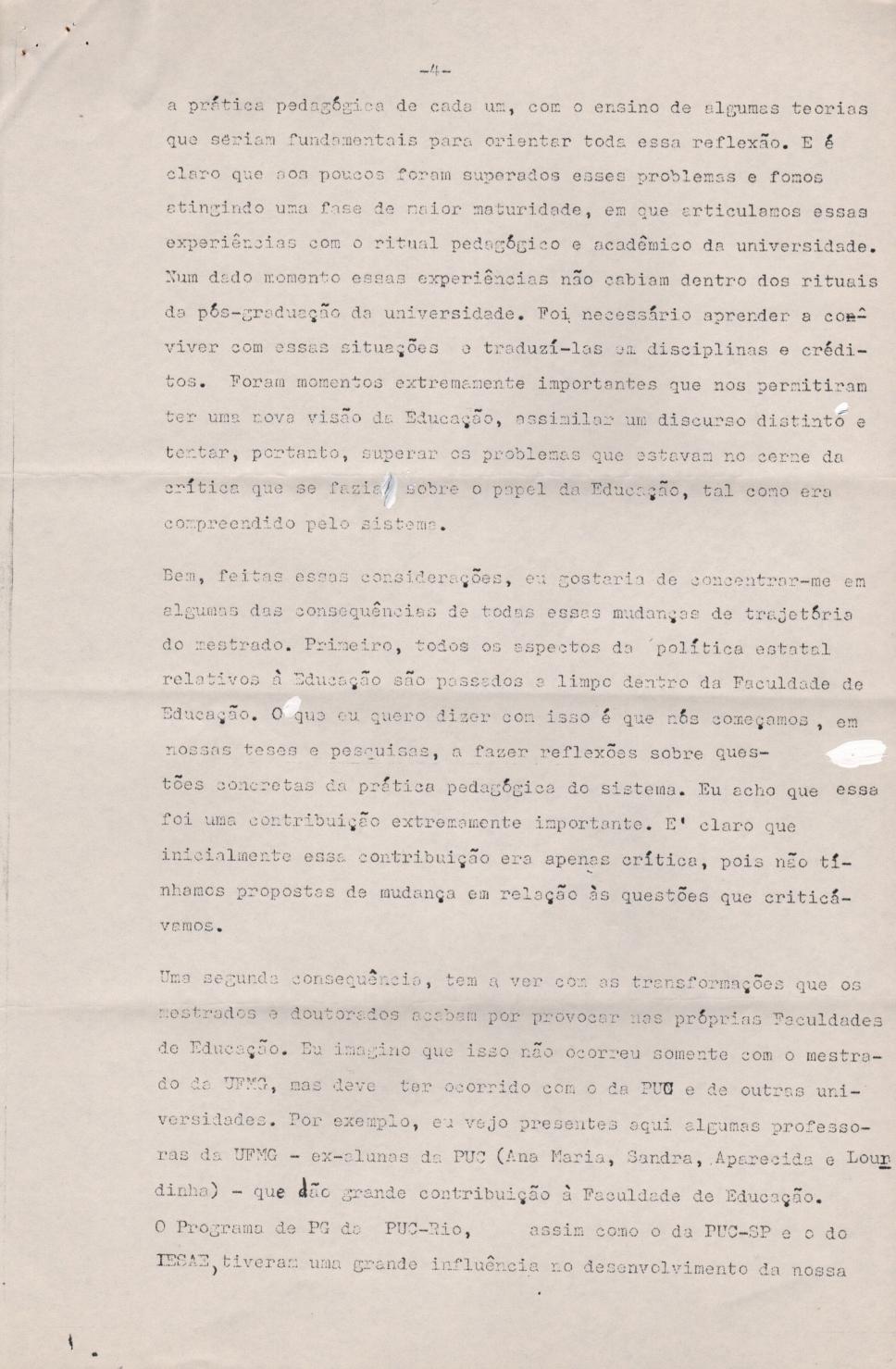 Artigo intitulado 'Pós-Graduação e competência política', de autoria da professora Glaura Vasquez de Miranda, apresentado no Seminário dos 20 anos do mestrado em Educação da PUC-Rio.
