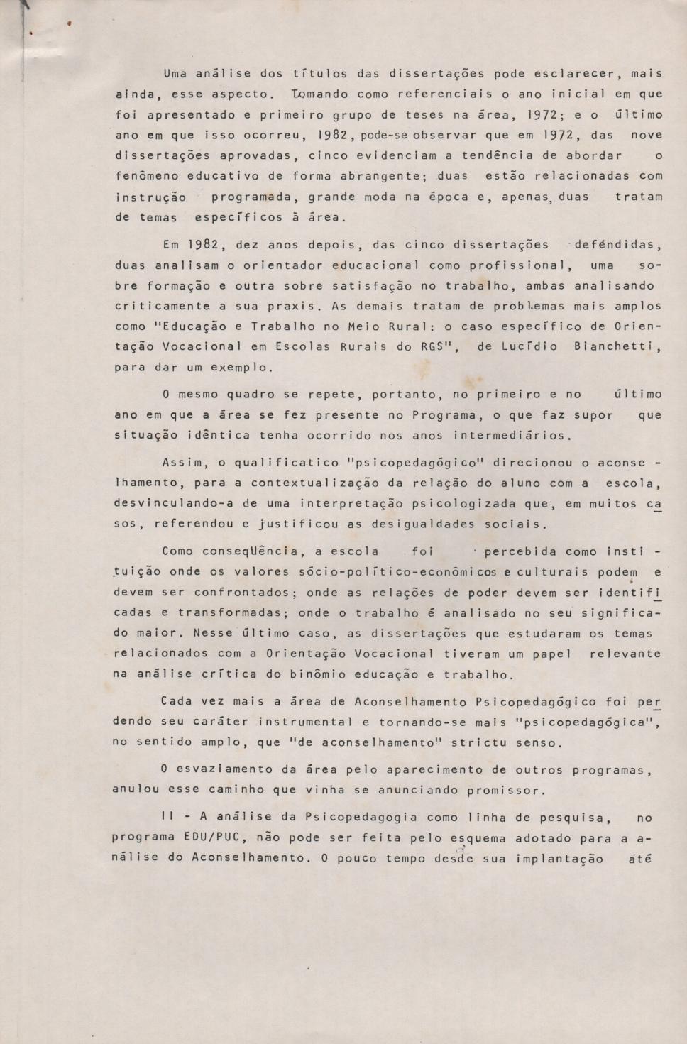 Artigo intitulado 'Do Aconselhamento Psicopedagógico à linha de pesquisa Psicopedagogia: evolução ou opção?', de autoria da professora Lais Esteves Loffredi, apresentado no Seminário dos 20 anos do mestrado em Educação da PUC-Rio.