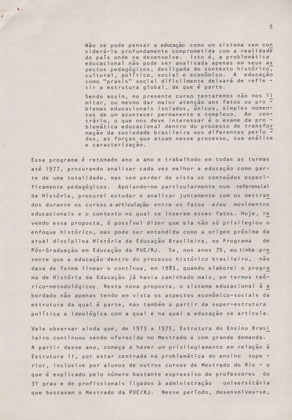 Artigo intitulado 'Da estrutura do ensino ao pensamento educacional brasileiro' de autoria da professora Maria de Lourdes Fávero, apresentado no seminário dos 20 anos do mestrado em Educação da PUC-Rio.