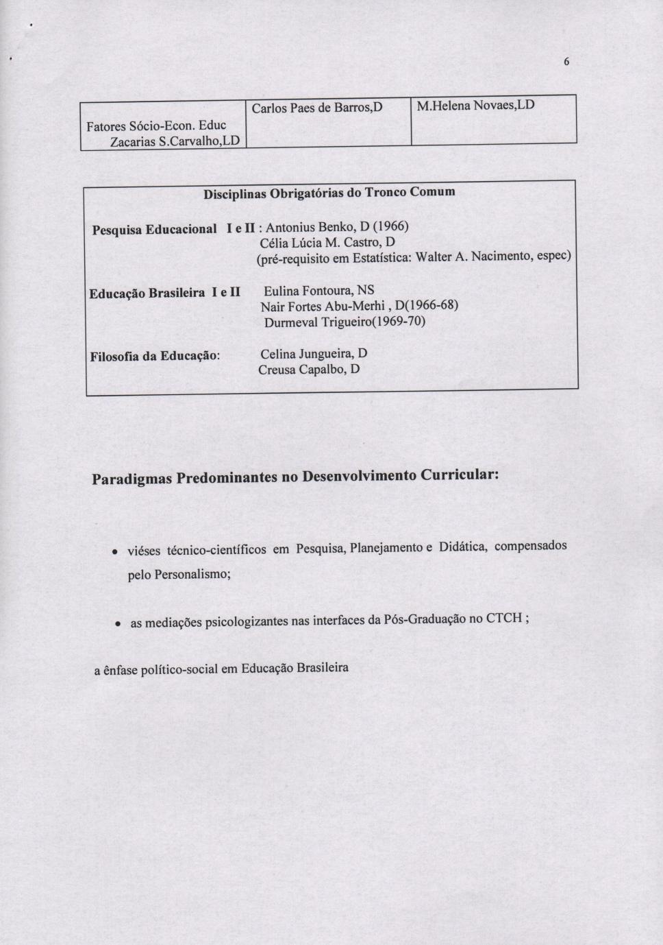 pe. Antonius Benkö, S.J. (prof. PSI), Célia Lúcia Monteiro de Castro (profa. EDU), Eulina Fontoura (profa. EDU/assessora da CADES), Nair Fortes Abu-Merhi (profa. EDU), Dumerval Trigueiro (prof. EDU), Creusa Capalbo (profa. FIL)