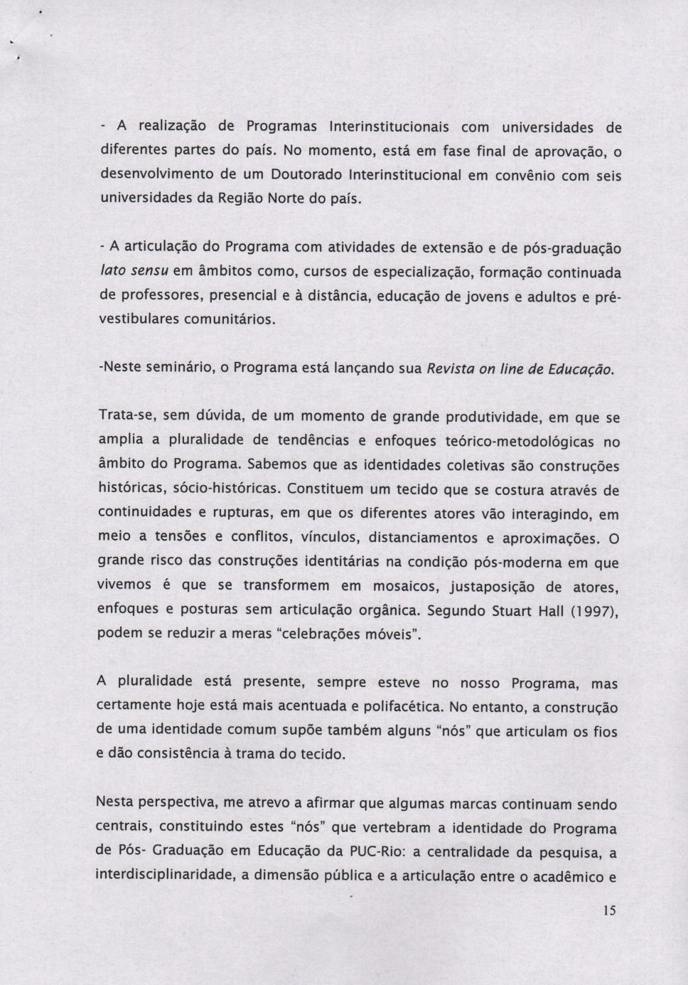 Artigo da professora Vera Candau intitulado 'A PUC-Rio e a Pós-Graduação em Educação no Brasil', que analisa o processo de implantação do programa de Pós-Graduação no Departamento de Educação da PUC-Rio.