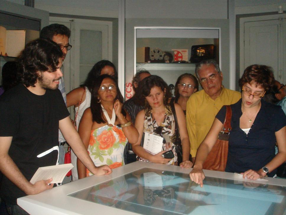 O monitor Lucas Valentim acompanha a visita dos alunos do curso de Licenciatura a distância do Departamento de História da PUC-Rio à exposição.