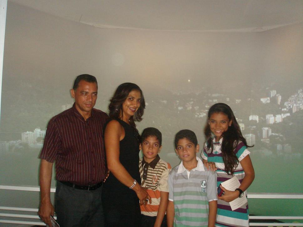 Aluna do curso de Licenciatura a distância do Departamento de História da PUC-Rio posa para fotografia com marido e filhos.