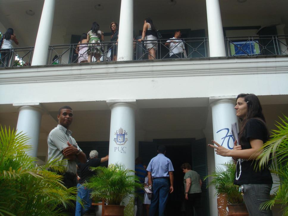 Vista da entrada e da varanda do Solar durante a visita à exposição dos alunos do curso de Licenciatura a distância do Departamento de História da PUC-Rio.