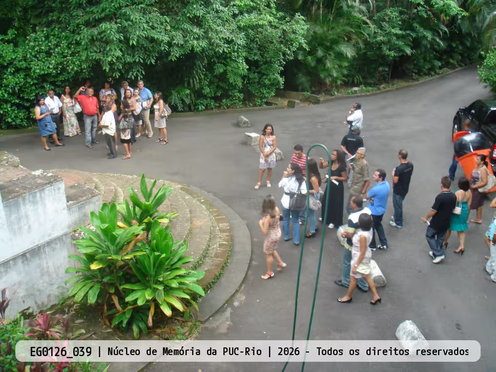 Chegada dos alunos do curso de Licenciatura a distância do Departamento de História da PUC-Rio à exposição.