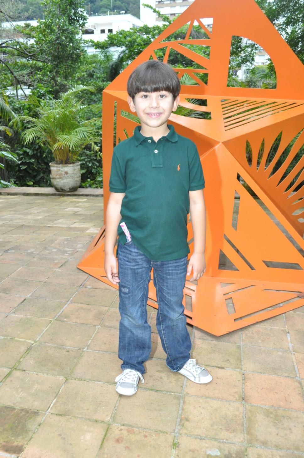 O neto do prof. Gustavo Sénéchal posa para fotografia antes de visitar a exposição.