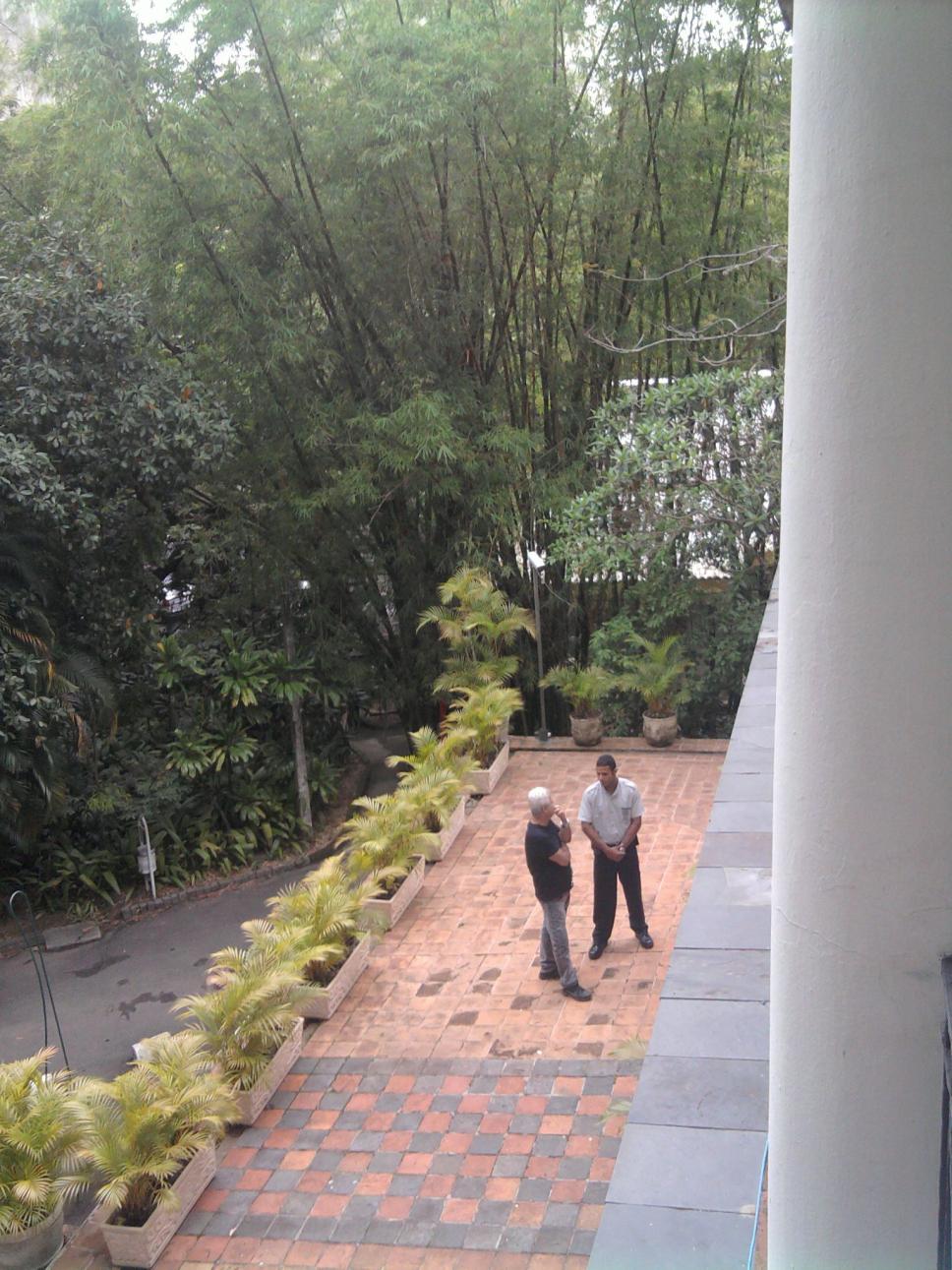Senhor Elson, recepcionista da exposição, de camisa preta.