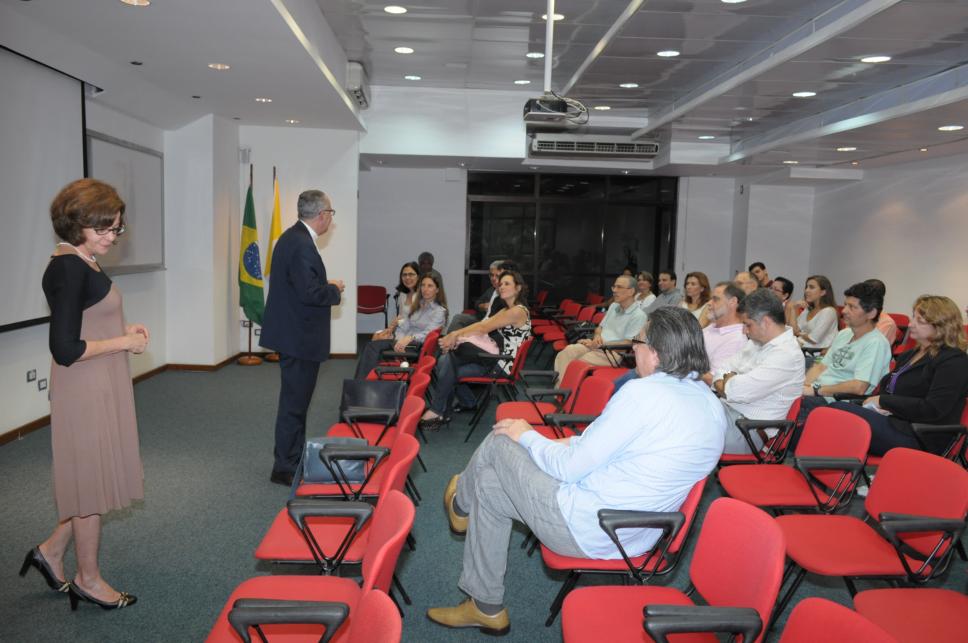 Da esq. para dir.: primeira fila: 3ª - profa. Adriana Gioda (QUI); segunda fila: 3ª - profa. Camilla Djenne Buarque Müller (QUI) e 4º - prof. Pércio Augusto Mardini Farias (QUI); terceira fila - 1º: prof. Reinaldo Calixto de Campos (QUI)