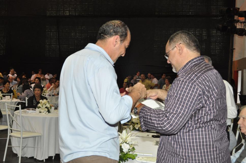 O funcionário Marcos Antonio recebe o diploma de Honra ao Mérito pelos 25 anos de dedicação à PUC-Rio.