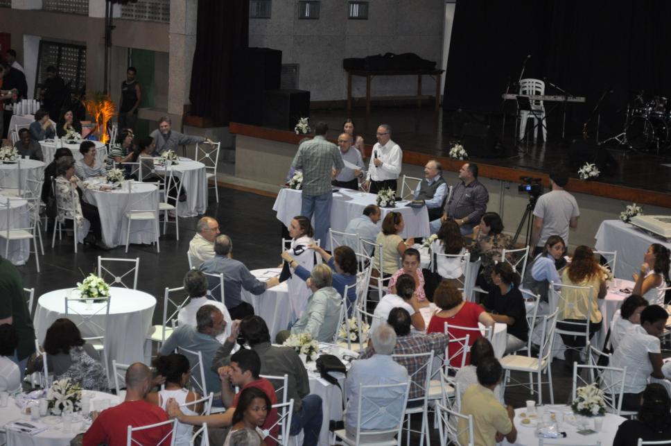 Na mesa da esq. para dir.: Suzana de Mattos Kerber (CACC), prof. Augusto Sampaio (Augusto Luiz Duarte Lopes Sampaio) (COM, Vice-Reitor para Assuntos Comunitários), prof. pe. Josafá Carlos de Siqueira S.J. (BIO, Reitor), pe. Francisco Ivern Simó S.J. (Vice-Reitor), n.i.