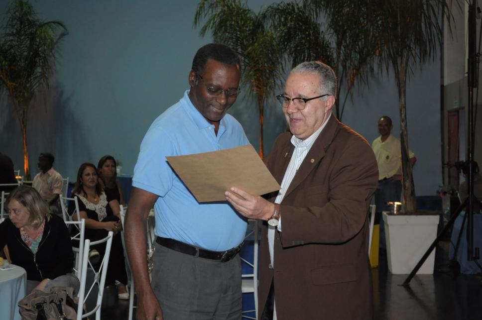 O Reitor Prof. Pe. Josafá S.J. entrega do diploma de Honra ao Mérito ao funcionário Isnarde Antonio Ernesto pelos 45 anos de dedicação à PUC-Rio.
