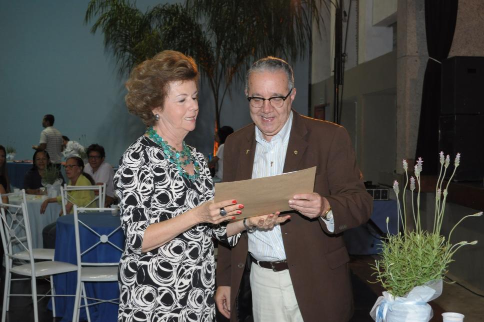 O Reitor Padre Josafá S.J. entrega o diploma de Honra ao Mérito à professora Ana Maria Tepedino em agradecimento aos 30 anos de trabalho na PUC-Rio.