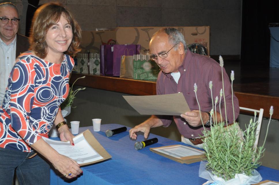 A professora Beatriz de Castro Barreto recebe o diploma de Honra ao Mérito em agradecimento pelos 35 de dedicação à PUC-Rio.