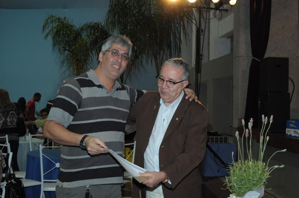Da esq. para dir.: Edmir Firmino da Costa Junior (PREF, AFPUC) e o prof. pe. Josafá Carlos de Siqueira S.J. (BIO, Reitor)