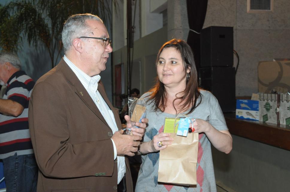O Reitor Padre Josafá S.J. conversa com a professora Maria das Graças no evento.