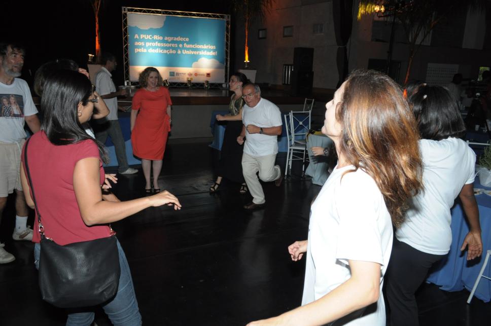 Funcionários e professores homenageados participam das atividades propostas pelas monitoras do projeto PUC em Forma.