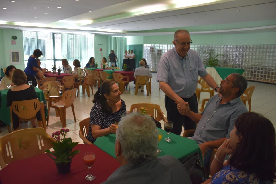 O Reitor Padre Josafá S.J. cumprimenta os funcionários durante a confraternização.