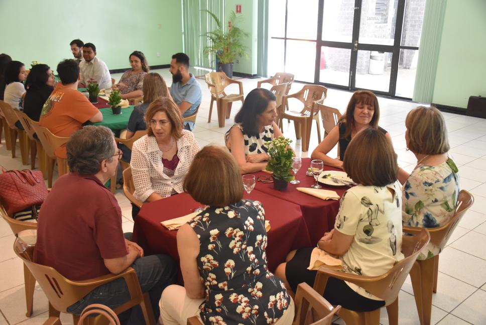 Funcionários reunidos na confraternização.