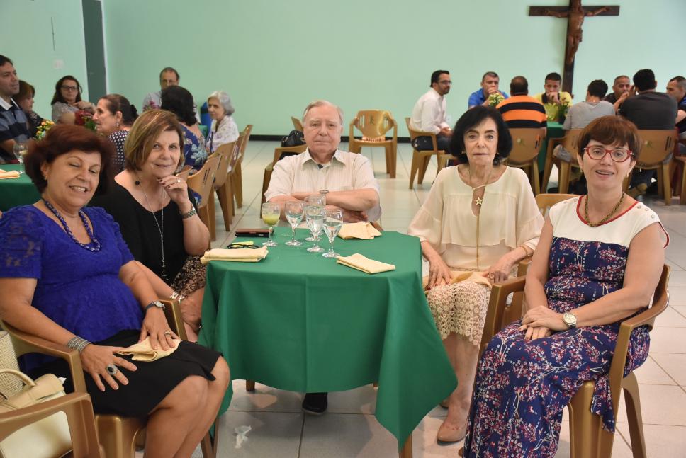 Em primeiro plano da esq. para dir.: Ivone de Figueiredo Santos (REI), Maria José Teixeira Soares (Majô) (VRD), prof. pe. Francisco Ivern Simó S.J. (Vice-Reitor), Alécia Suaid Moura (REI) e Elizabeth Salvo Brito Jazbik (VRAC)