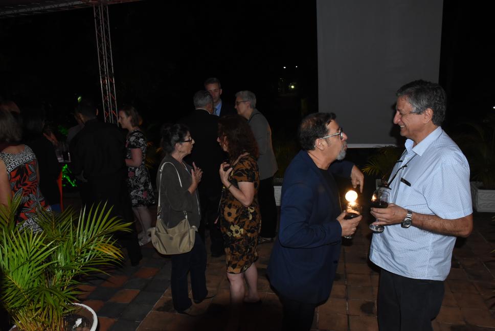 Convidados reunidos no coquetel realizado no pátio do Solar.