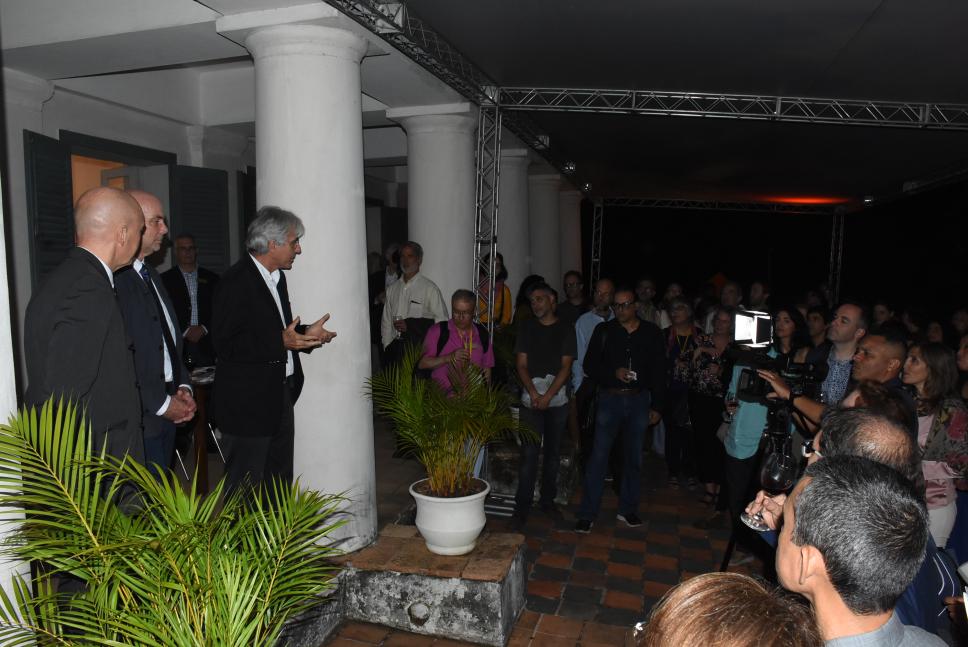 Em pé na varanda do Solar, do lado esq. da fotografia, da esq. para dir.: prof. Karl Erik Schøllhammer (LET), Kendall Brostuen (Decano do Conselho Executivo do Casa na Brown University) e o prof. José Ricardo Bergmann (CETUC, Vice-Reitor para Assuntos Acadêmicos)